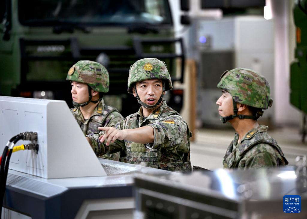 火箭军某旅发射二营高级军士利用模拟训练器材ღ★ღღ,为战友讲解操作要领(资料照片)ღ★ღღ。新华社发(刘明松摄)